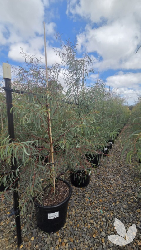 A lovely medium sized tree for open spaces with a smooth powdery white, cream or grey trunk with red flecks through it. It naturally forms one trunk with a wide spreading canopy and grows relatively fast. It has narrow, thin green leaves and white flowers in the summer. It is adaptable to a wide range of conditions, known to tolerate poor soils and is a good choice for areas high in clay and shallow, rocky soils.