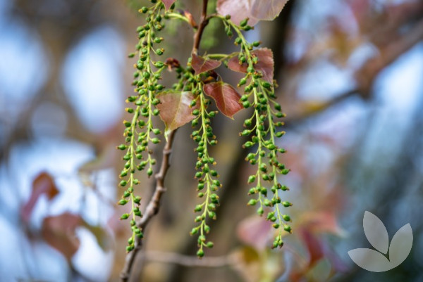 Polulus nigra, commonly known as Black Poplar, is a large, fast-growing deciduous tree to 30m tall. Branches are narrow and upright and bark is grey, rough in texture and strongly furrowed. Produces attractive autumn foliage when leaves turn from green to yellow. It produces small red flowers in catkins that hang from branches.