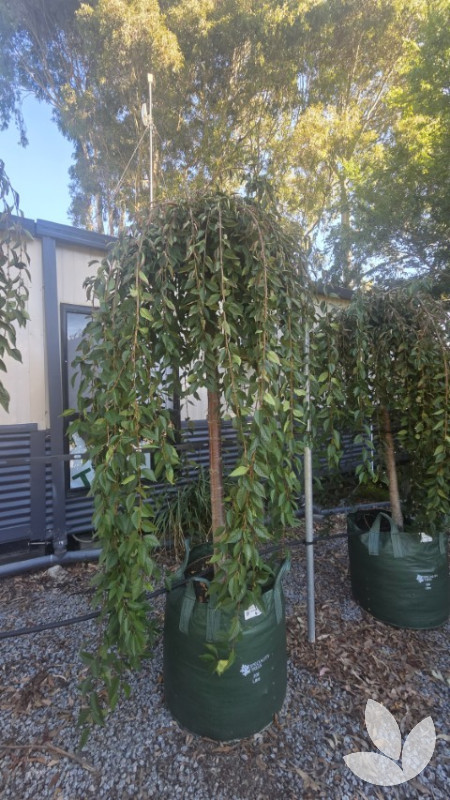 A prolific bloomer and beautiful Autumn colour all in one compact tree! This variety of grafted Weeping Cherry has a strong weeping habit. Spring offers masses of white flower clusters which cover the pendulous branches before the reddish-bronze new growth begins to emerge. Through the warmer months, the serrated foliage turns green and by autumn another beautiful display of colour can be seen in shades of orange, gold and red.