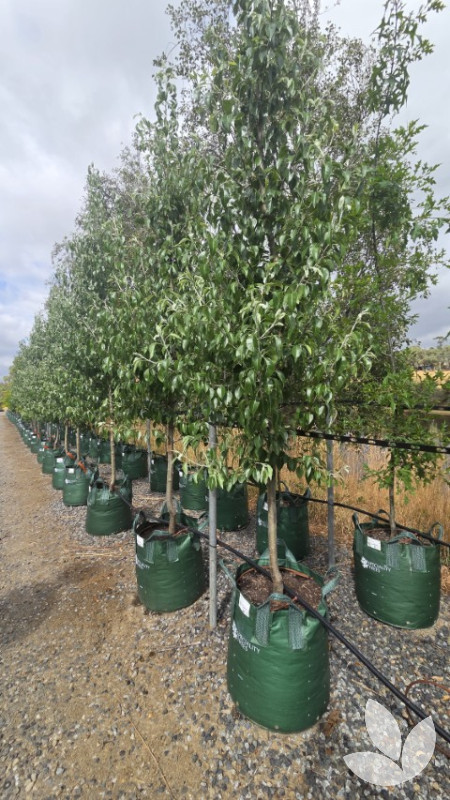 Commonly known as the Snow Pear, this form of Pyrus sets itself apart from the rest with its main point of difference being the slightly glaucous foliage which gives the tree a soft, silvery green appearance when in leaf. As well as this, come Autumn, as with other forms of Pyrus, the foliage puts on a vibrant show of bright red colour. The flowers are small and white and may be followed by small fruits which have a mild, sour taste. This tree has a well-balanced structure and is easy to manage having a straight trunk. The grey-green leaf colour lends itself well to adding contrast and interest amongst other plants.