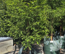 | Its fine feathery foliage makes this a beautiful specimen tree. As a young tree it is partly conical in shape, becoming more spread out when mature. The bright green foliage in spring and summer provide interesting contrast in the landscape. |