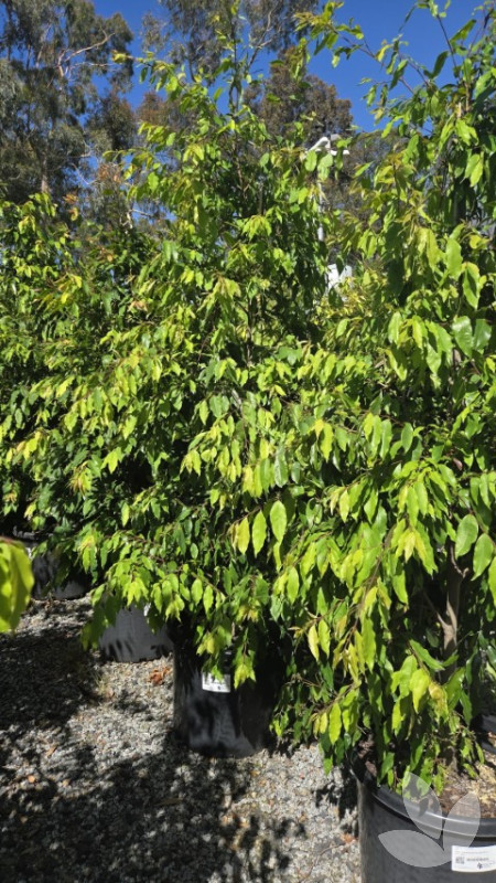 Unique to Speciality Trees and our best-selling and most popular tree! This is a versatile, bushy tree with a wonderful weeping habit making it perfect for large screening projects and the softening of fence lines. Propagated from Victorian mother-stock, unlike other Waterhousea, so responds better to all weather conditions, including cooler climates. New growth starts off pink and orange with leaves turning to various shades of green as the foliage matures. Foliage is maintained to the base of the plant giving a year-round lush, full appearance. It forms a small quantity of creamy-white flowers in summer. Berry production on 'Whisper' is unlike other Lilly Pillies, with minimal quantities of small green berries that, whilst bird attracting, these fruits are tucked in amongst the foliage and are not obvious.
